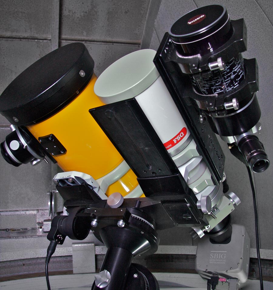 | This is the observatory as it was configured before I bought the TOA-150 (6-inch) refractor. The orange telescope is a Takahashi “Tak” Epsilon